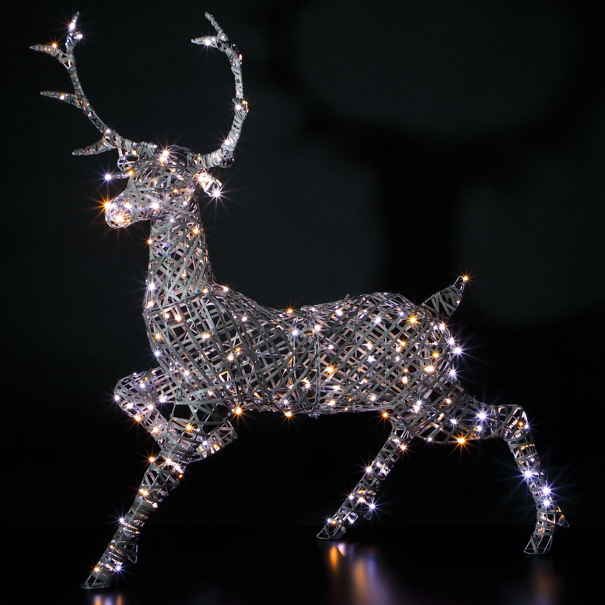 Transform your holiday décor with our 1.4m Grey Duo Bulb Woburn Stag, featuring multi-tonal grey rattan and 300 stunning duo LEDs that let you choose between warm white, white, or a dazzling mix of both with just a click. This elegant stag, ideal for both indoor and outdoor settings, includes a transformer with a built-in timer and a 10m lead cable for easy setup. Crafted from durable plastic, wire, metal, and LED materials, this low-voltage stag adds a sophisticated touch to your festive display.