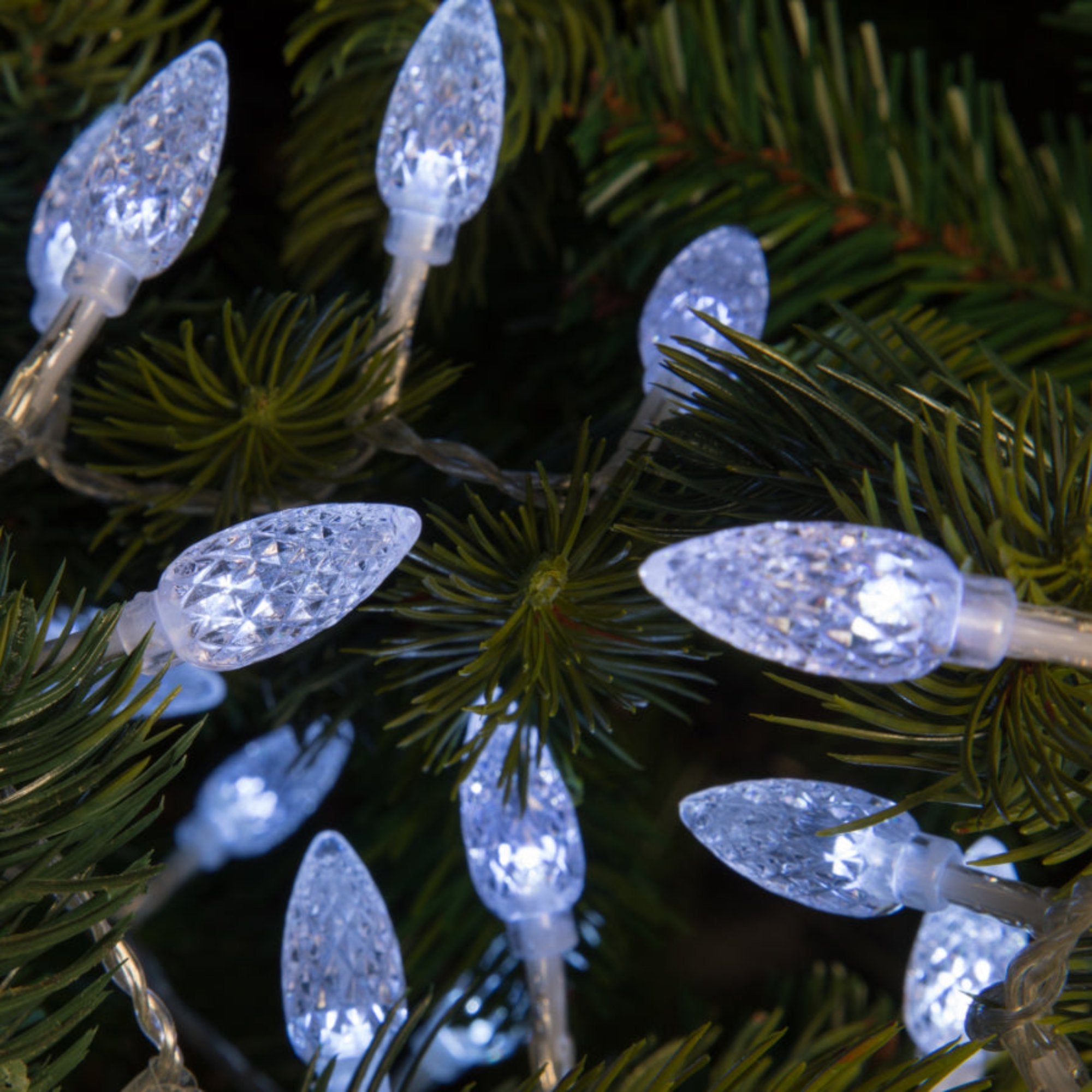 Add a classic yet contemporary flair to your décor with these 100 White Faceted Cone Lights. Featuring 100 bright white LEDs encased in decorative faceted cone shades, they offer a chic and versatile lighting solution for banisters, garlands, or any festive setup. With a 4.95m light chain and a 5m lead cable, these lights come equipped with the NOMA EasyTimer for convenient operation. Perfect for both indoor and outdoor use, they combine functionality with a touch of traditional elegance.
