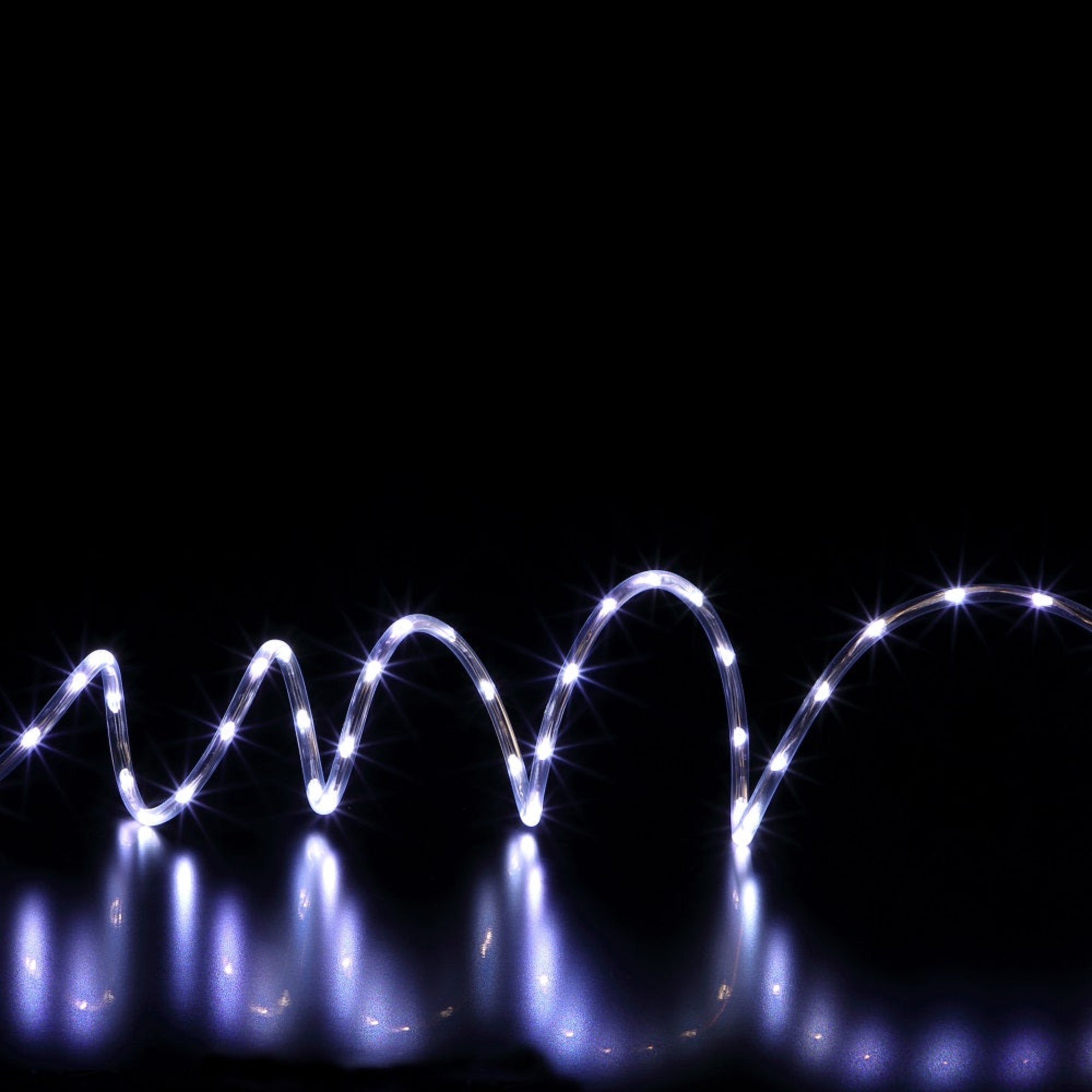 Illuminate your space with the 10m White Rope Cable Light, a stylish and adaptable lighting solution perfect for framing windows and doors. This rope light features 400 white micro LEDs enclosed in a transparent tube, offering a crisp, clean glow. Equipped with multifunction settings including static light and the convenient EasyTimer, it provides flexibility and ease of use. With a 10m lit length, 5m lead cable, and 2.5cm bulb spacing, this rope light is suitable for both indoor and outdoor applications.