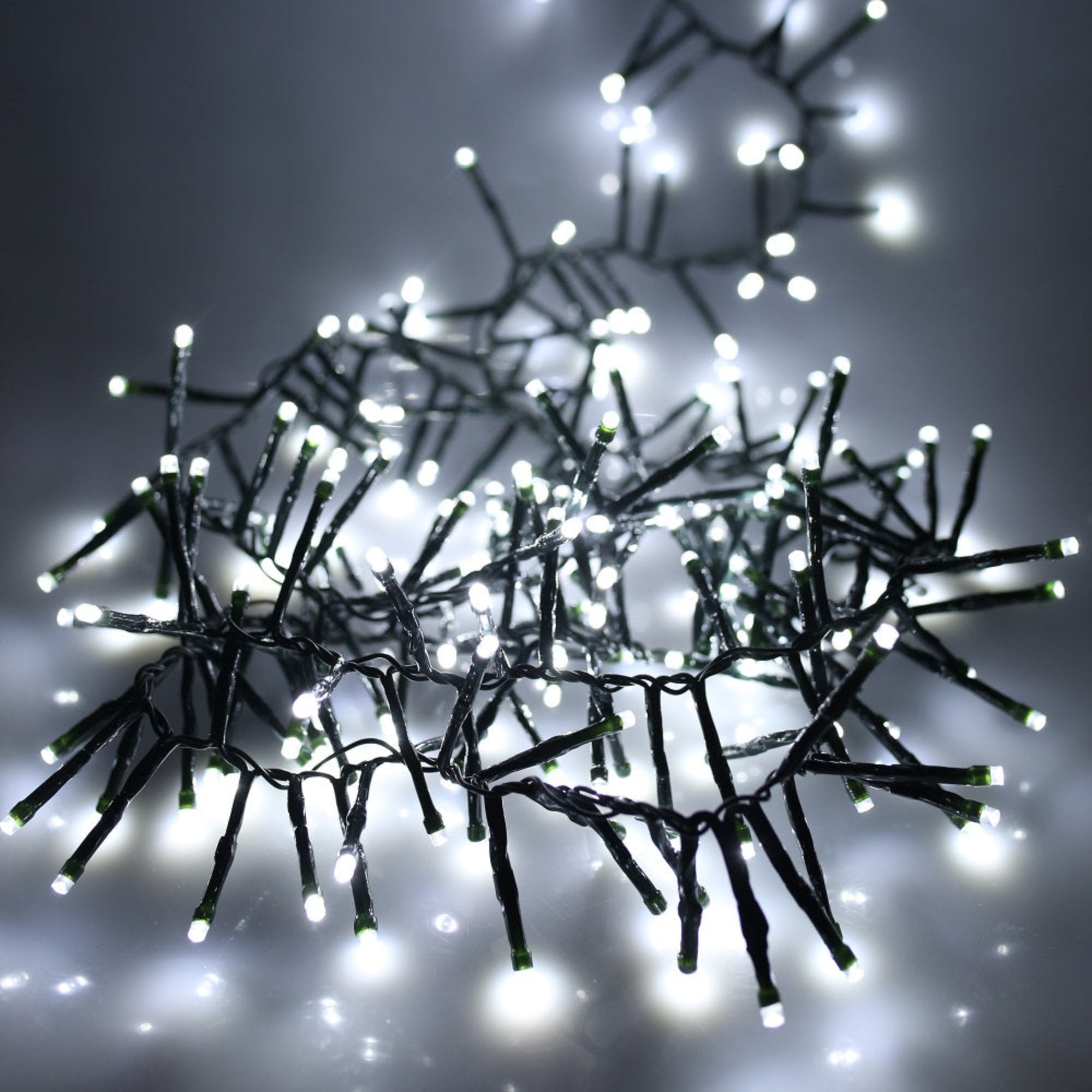 Illuminate your home with the 1500 White Multifunction Cluster Lights, designed to add a touch of elegance to your Christmas tree or garland. Featuring a high density of white LEDs spaced 1.45cm apart on a green cable, these multifunction lights offer a brilliant, sparkling effect. The 5m lead cable provides ample flexibility for various placements, and the built-in 8-hour timer ensures convenient operation. Ideal for both indoor and outdoor use, these lights combine practicality with festive charm.