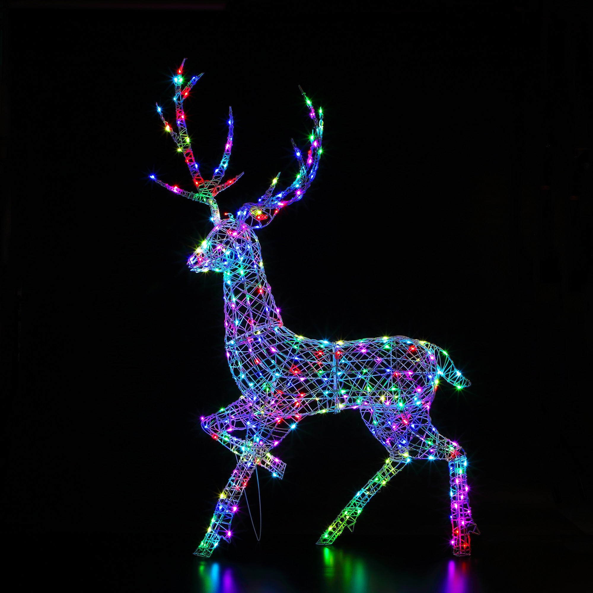 Make a bold statement in your garden or home with the majestic 2m Highland Stag, crafted from white rattan and illuminated by 320 colour-changeable LEDs. Using the included NOMA remote, you can switch between a range of colours and lighting effects to suit your style or the season. With a built-in timer and a generous 10m lead cable, it’s both practical and eye-catching - perfect for adding a magical touch to your festive display.