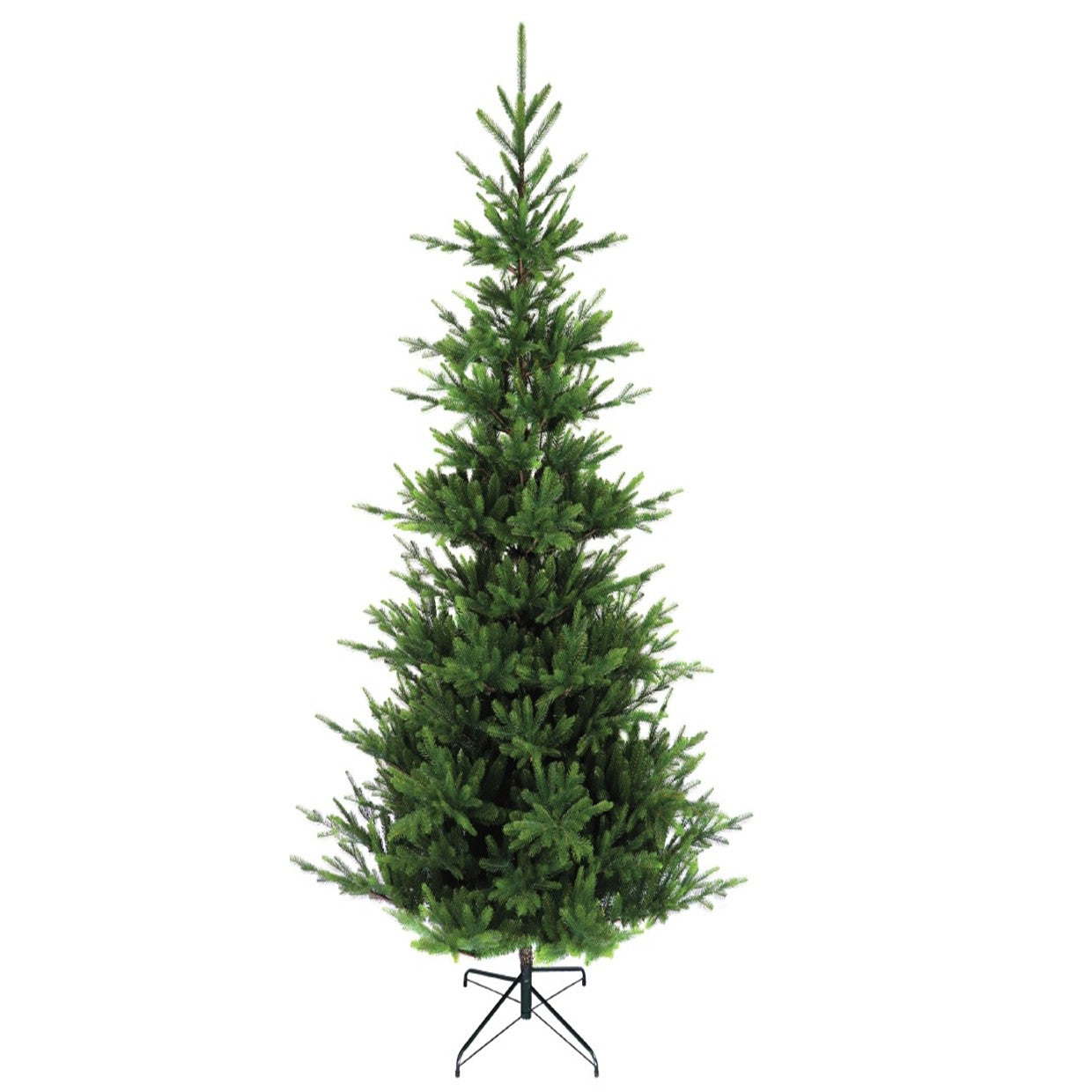 Introducing the 7.5' St. Moritz Christmas Tree, designed to make a statement in smaller spaces. With 2422 PVC and realistic PE tips, this tree boasts a beautifully textured and full appearance, while its slimmer profile ensures it fits perfectly in cosy areas. Featuring hinged branches for easy setup and a sturdy metal stand for stability, making it an ideal choice for adding festive charm to any indoor setting.