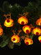10 adorable brown padded Reindeer light string. Perfect for childrens bedrooms or small Christmas trees. Battery operated with warm white LEDs.