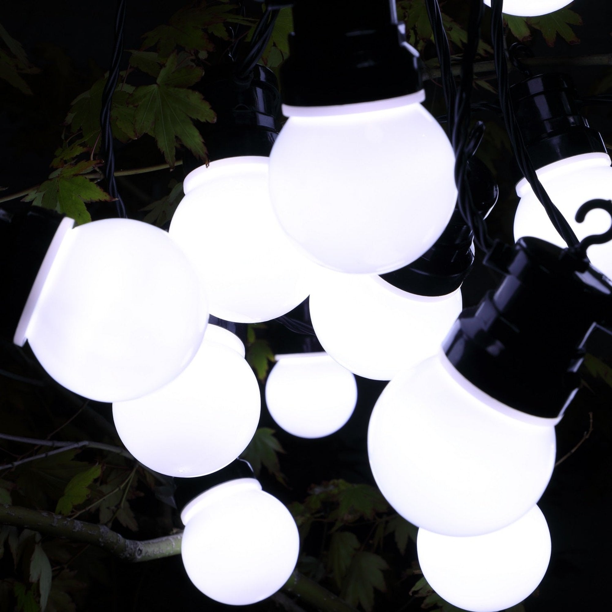 Illuminate your space with the 20 White Traditional Festoon Lights with Black Cable. These vibrant lights feature 20 bright white bulbs, perfect for adding a cheerful touch to your home or garden. With an impressive 11.4m light chain length and 5m lead cable, they're ideal for decorating a 3m gazebo or any outdoor area. Each festoon contains 4 LEDs, spaced 30cm apart, providing a warm, inviting glow. The multifunctional design includes an 8-hour built-in timer for effortless operation, making these lights a convenient choice for indoor or outdoor festivities.