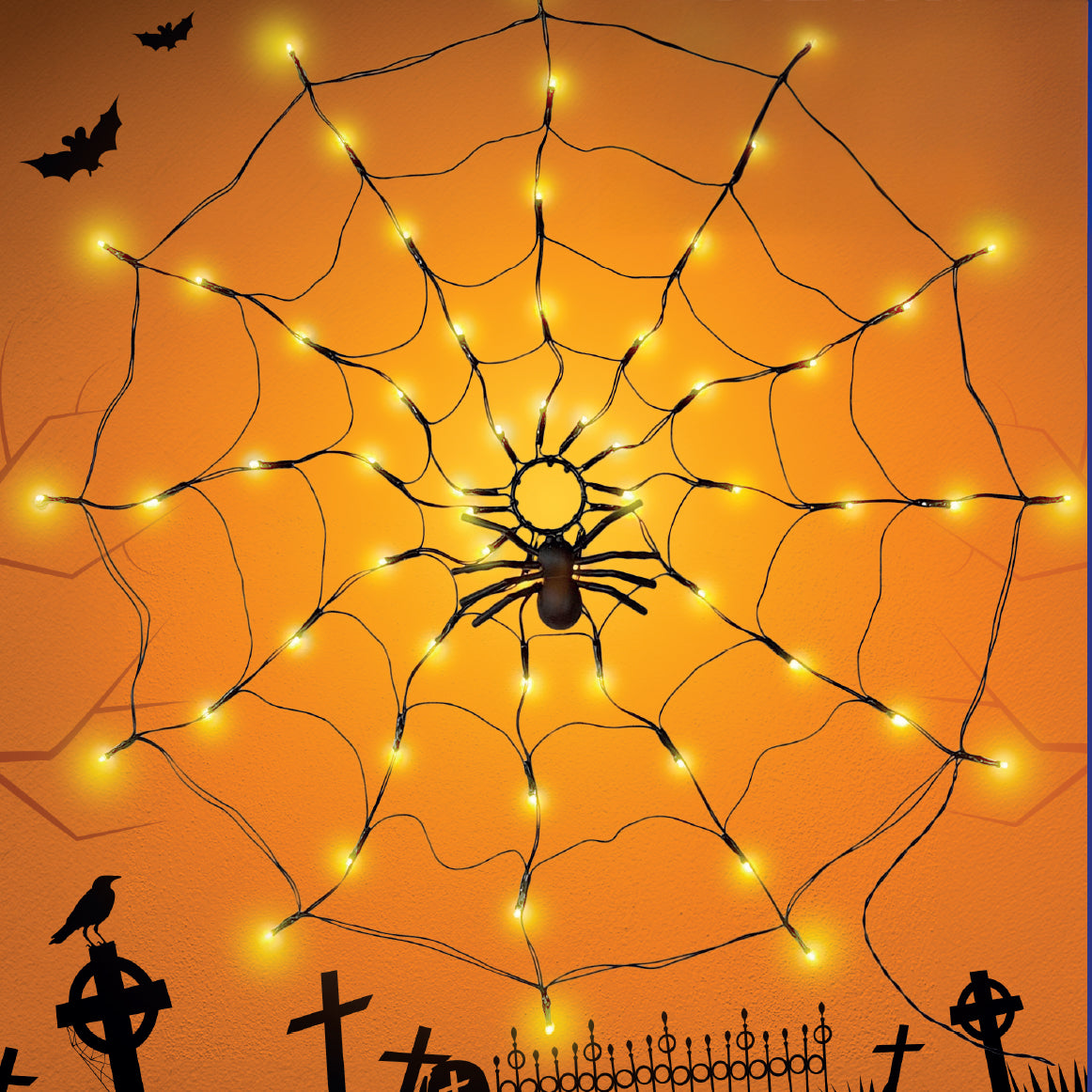 Transform your walls or windows with this 70 cm spider web and spooky spider for a hauntingly eerie display. Available with purple or amber LED lights, it’s battery-operated and features a 6-hour timer for hassle-free spooky fun.