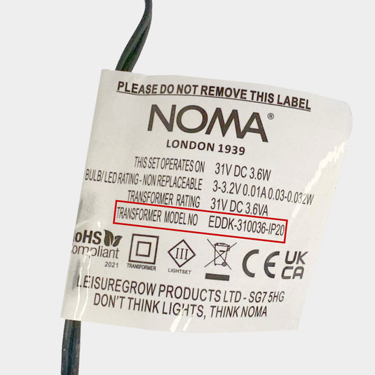 All our light strings come with an attached label which outlines the voltage, wattage, and the model number of the transformer. Please look for the line which states "TRANSFORMER MODEL NO", followed by either an ED, EDD, EDDK, JT, or SP code - followed by a series of numbers or letters. As before, use the search bar to locate the corresponding transformer, alternatively, you can select from the transformer list below.
