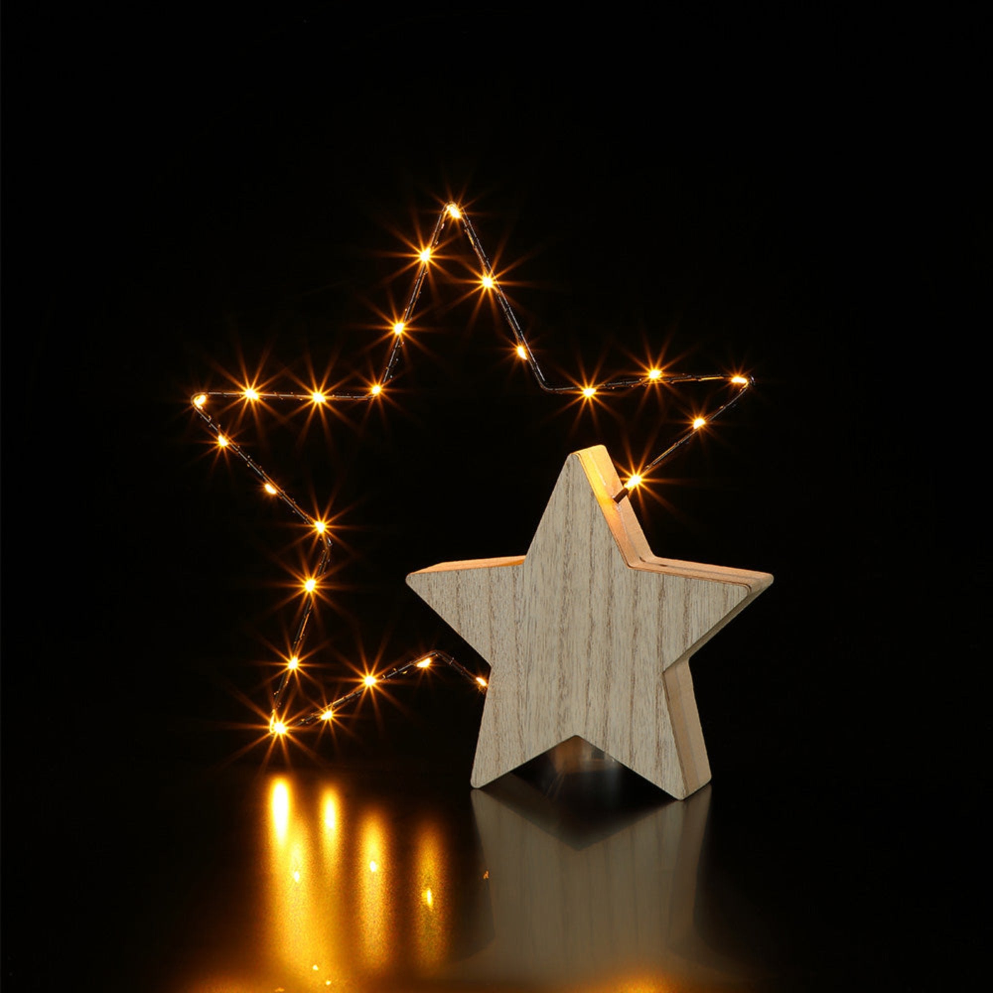 27cm Wire & Wood Star With Warm White LEDs