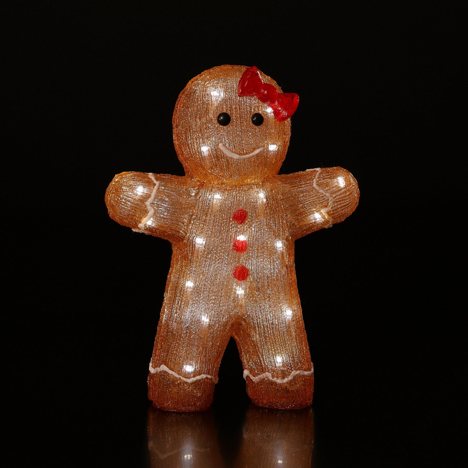 Add a sprinkle of festive magic to your décor with this charming Acrylic Mrs Gingerbread Light. Standing 40cm tall, she glows beautifully with 40 warm white LEDs, creating a cozy and inviting atmosphere perfect for holiday celebrations.