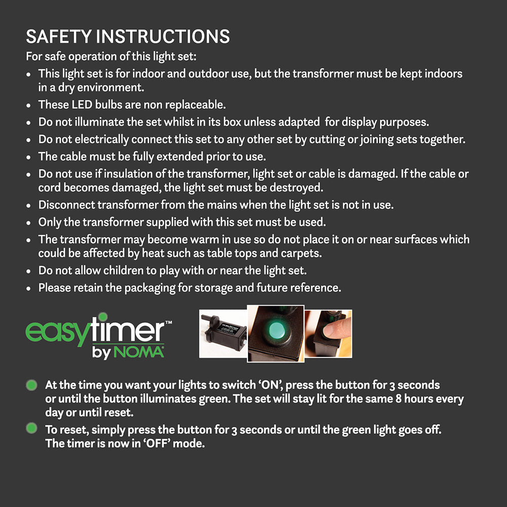 Enhance your festive décor with the 8 White Snowflake Pattern Projector String Lights. Each of the 8 projector lights displays a charming cluster of white snowflakes onto any surface, bringing a wintry wonderland to your space. The lights are spaced 50cm apart and come with a 10m lead cable, making them versatile for various settings. Equipped with EasyTimer technology for convenience, these projectors add a magical touch to both indoor and outdoor spaces.