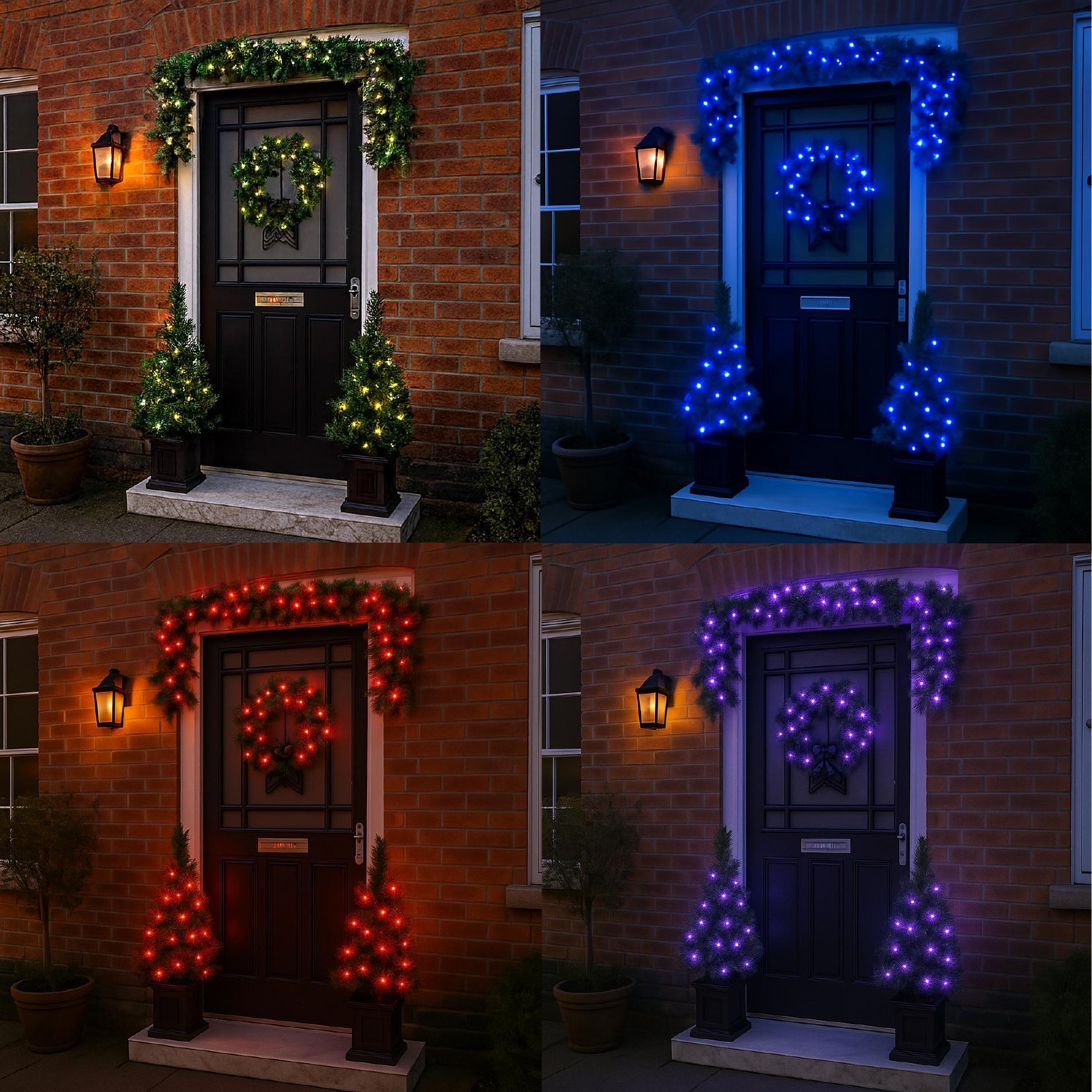 Colour Changeable Door Set with Wreath, Garland and 2 Trees - 200 LEDs