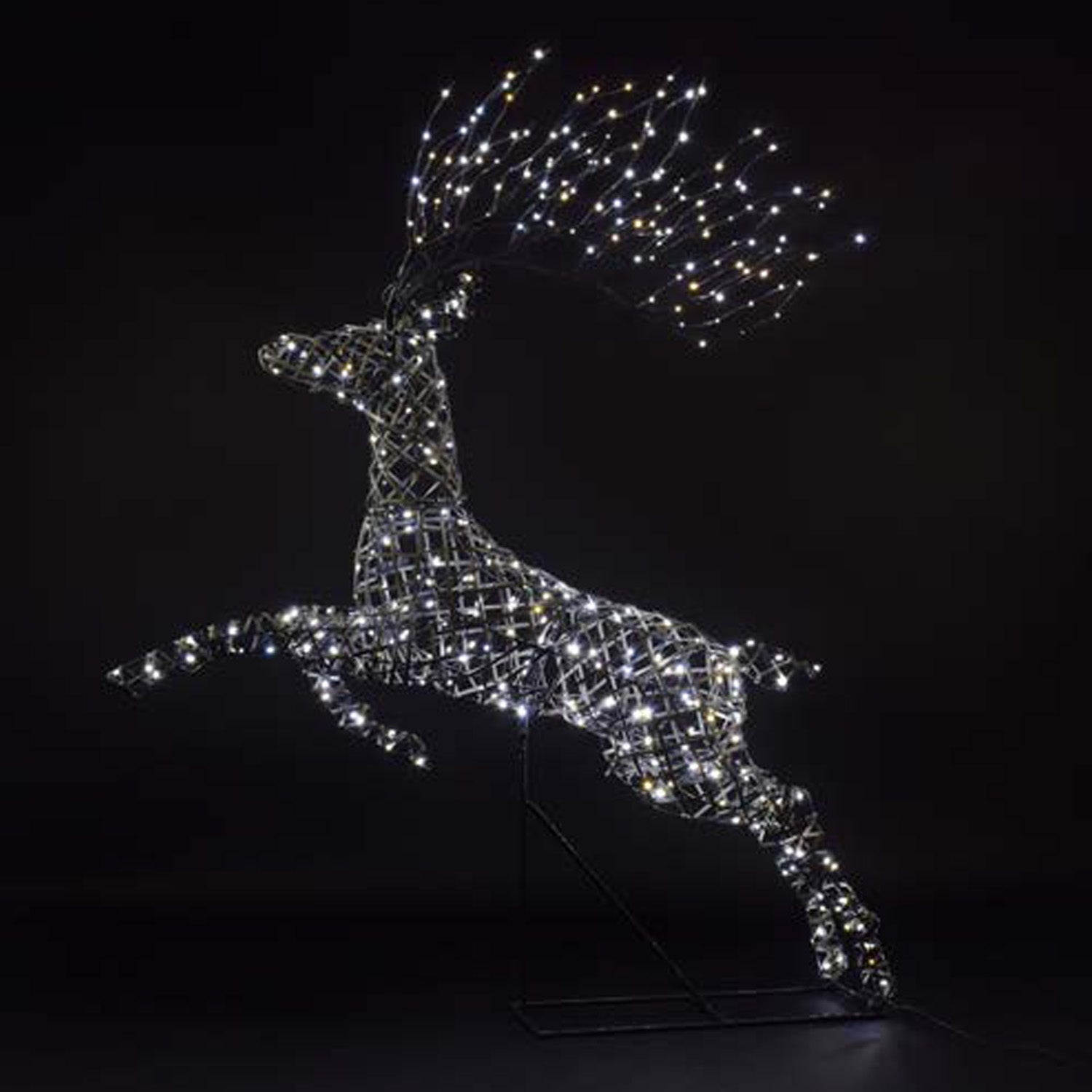 Make a grand statement this festive season with the magnificent Grey Duo Bulb Rattan Richmond Leaping Stag. Standing 1.5 metres tall, this stunning decoration captures the elegance and energy of a leaping stag, beautifully illuminated by 378 warm white and white duo LEDs that create a brilliant, shimmering effect.