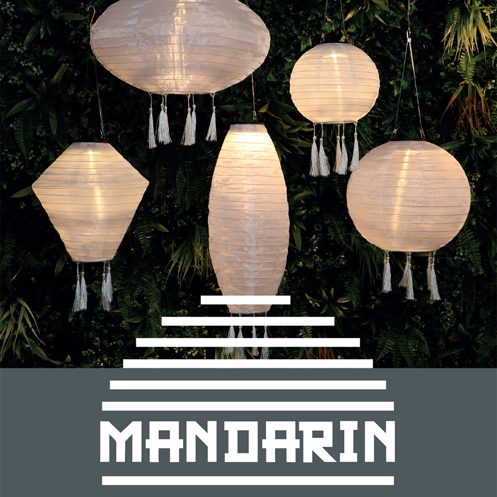 Elevate the ambiance of your garden or patio with the Mandarin 30cm White Round Lantern. Featuring a warm white LED and solar-powered design, this lantern offers a soft, inviting glow that adds a stylish touch to any outdoor space. Made from durable, water-resistant white nylon, it is perfect for all weather conditions. The detachable tassels and on/off switch provide customization and convenience, while the included hanging cable and hook make it easy to hang and enjoy.